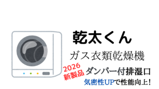 ガス衣類乾燥機「乾太くん」の新発売のオプションを解説。2026年排湿口ガイドがモデルチェンジ。今回は”ダンパー”部分の気密性がアップし、性能向上。が使いやすく進化。特に高気密住宅へ設置予定の人は要チェック!発売時期、ラインナップや特徴を全て解説。